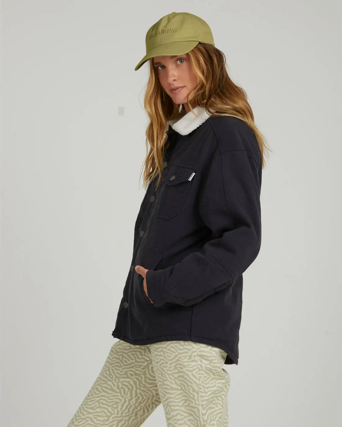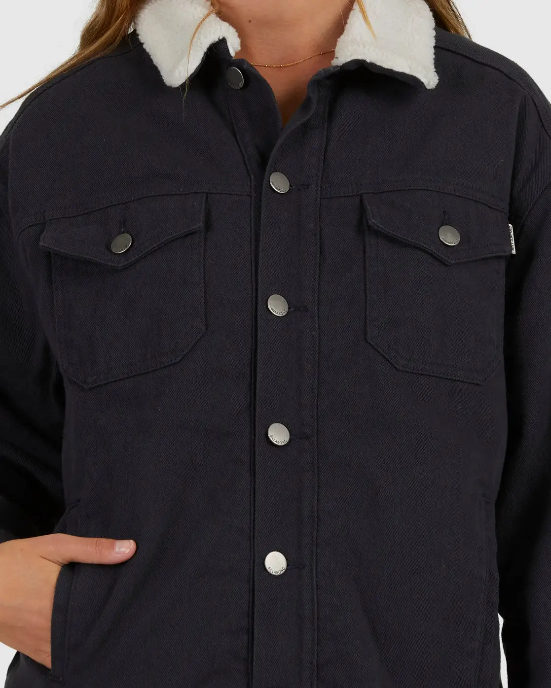 With throwback vibes for days, the Cheeky Jacket is made from quilted soft cotton jersey for a cosy feel throughout. This women’s trucker style jacket takes queues from vintage design with a relaxed fit, sherpa collar and two pocket patches on the chest. Finished off with a button closure.