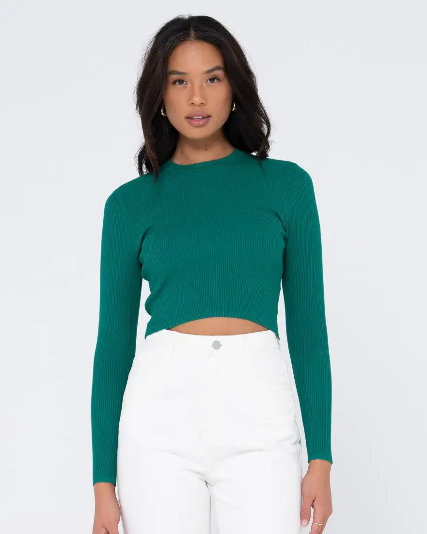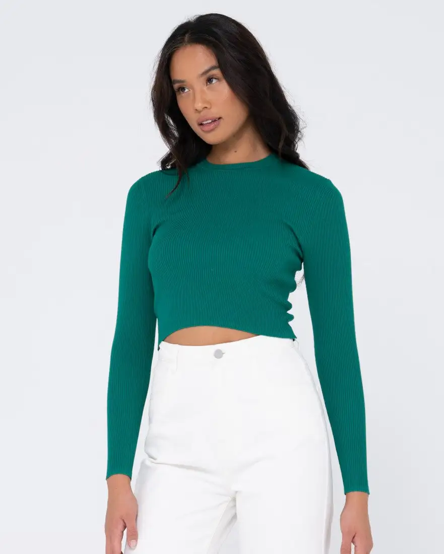 Rusty Charis Ribbed Crop Long Sleeve Knit Top