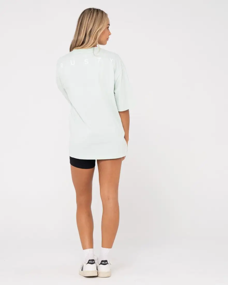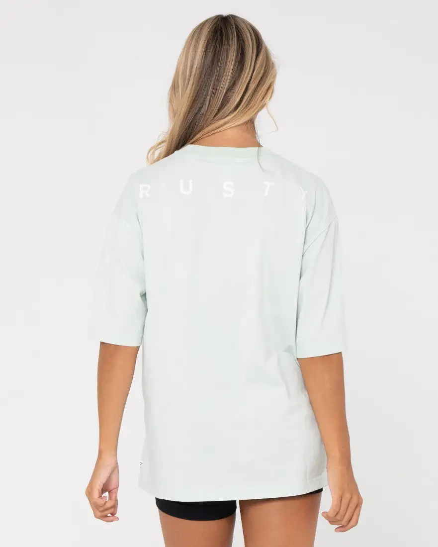 Find ultimate comfort with our new Rusty Essentials Back Oversized Tee. An oversized style with elbow length sleeves, this tee features a big Rusty logo print across the top of the back. In a soft surf spray colour to help you add a subtle pop of colour to your outfit.